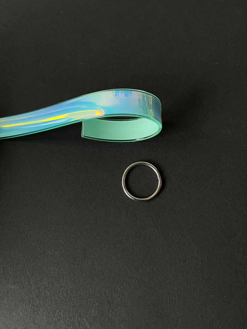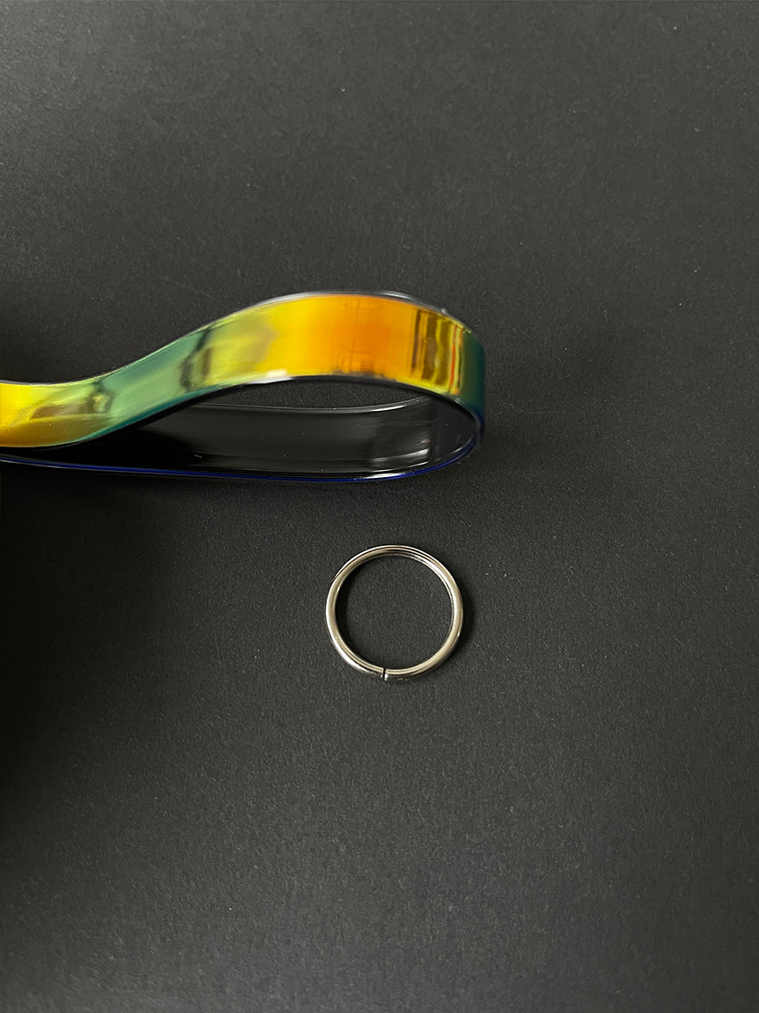 Deinen angegebenen Halsumfang nutze ich für die Länge des Bandes. Durch die Karabiner und die Ringe wird es dann lockerer fallen und ist dadurch ca. 7 cm länger.