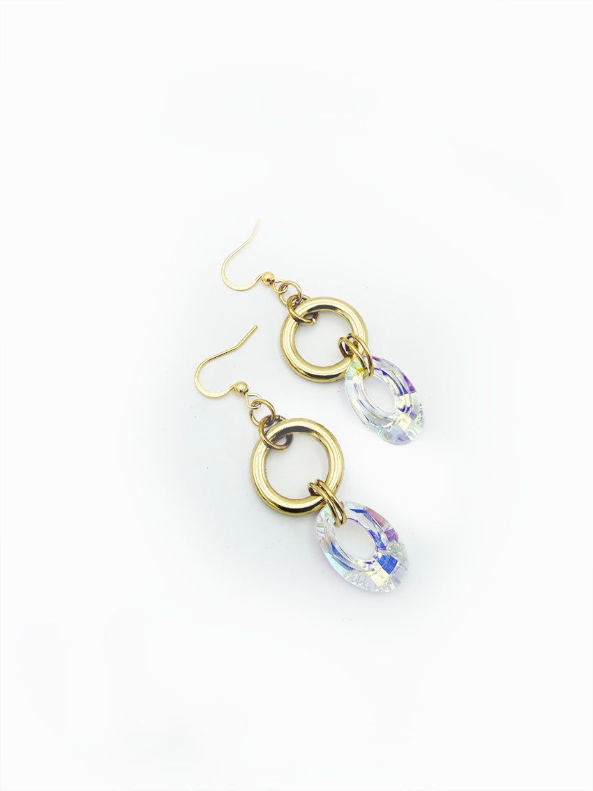 Die Ohrringe SHIVA passen perfekt durch ihre ovalen Glasringe mit Kristallschliff und schillerndem Holo-Effekt zum gleichnamigen Choker, auf den es beim Kauf als Set 10% Rabatt gibt.